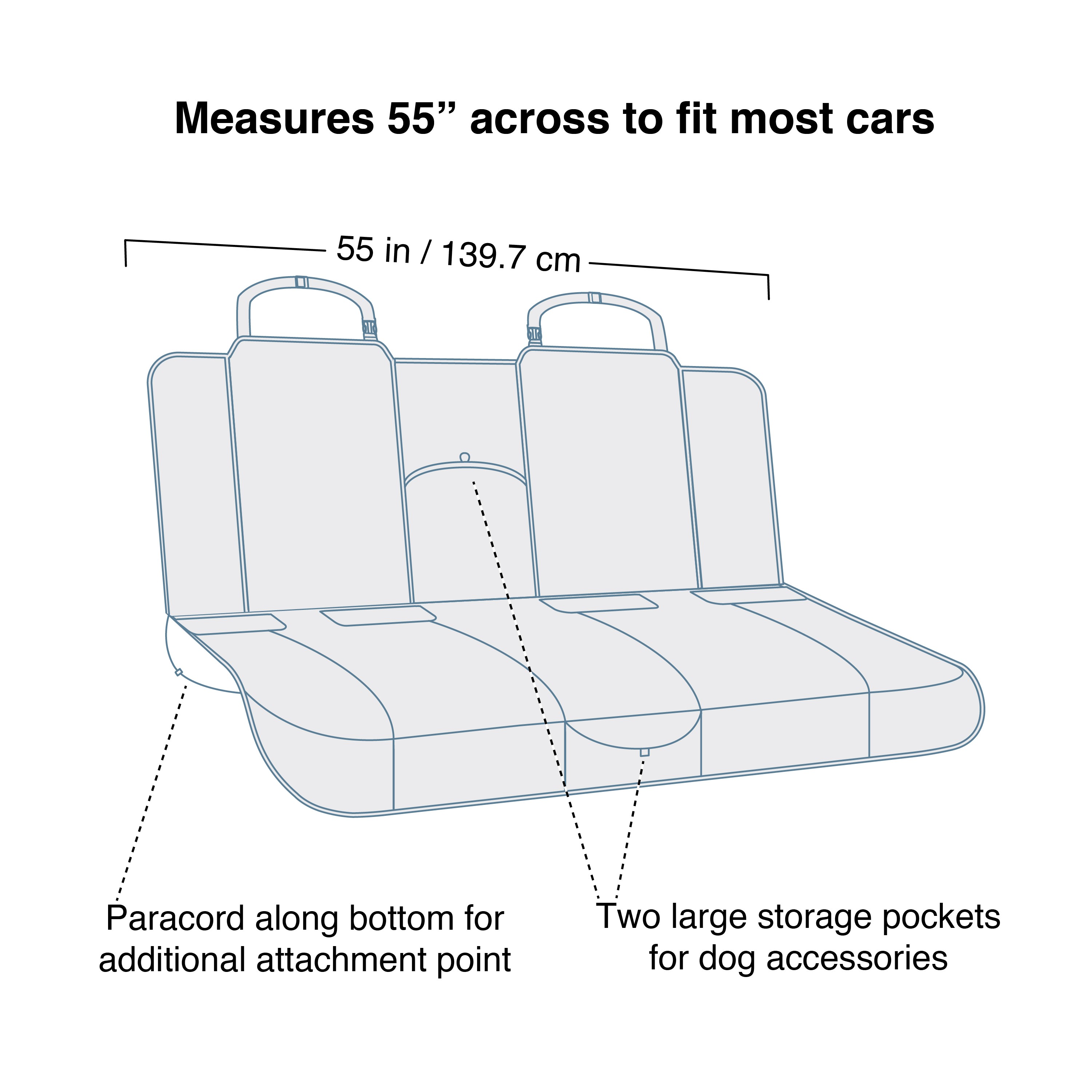 A kétszínű szövés kifinomult pettyes mintát hoz létre, tartós és gyönyörű védelmet két kedvenc dolog között, amik ideális esetben soha nem találkoznának: a kutyád és az autód belseje között.