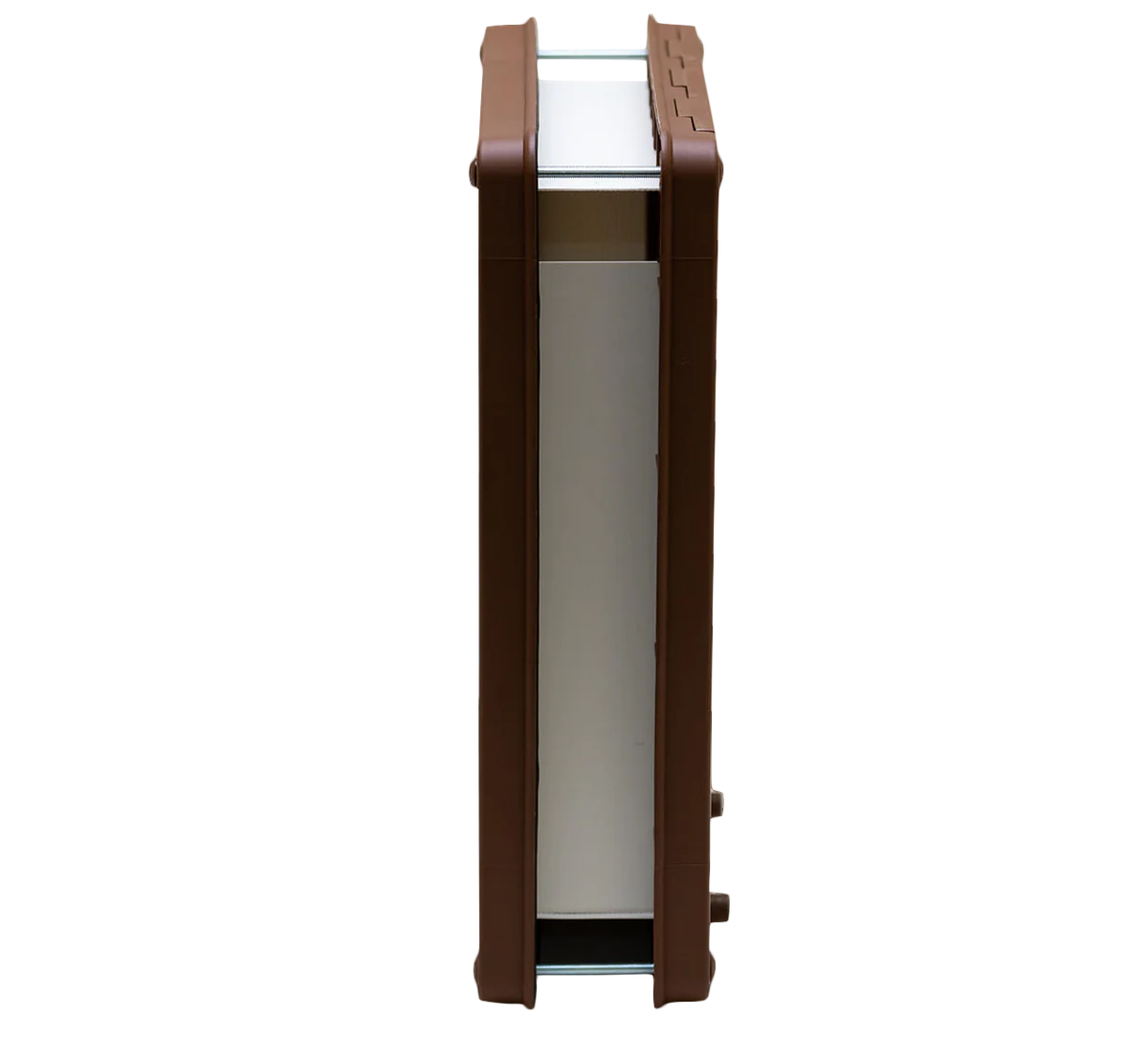 A vízhatlan mágneszárral felszerelt lengőajtón, körben olyan szélfogó sörte található, ami nagymértékben meggátolja a ház belső fűtésének kiáramlását.